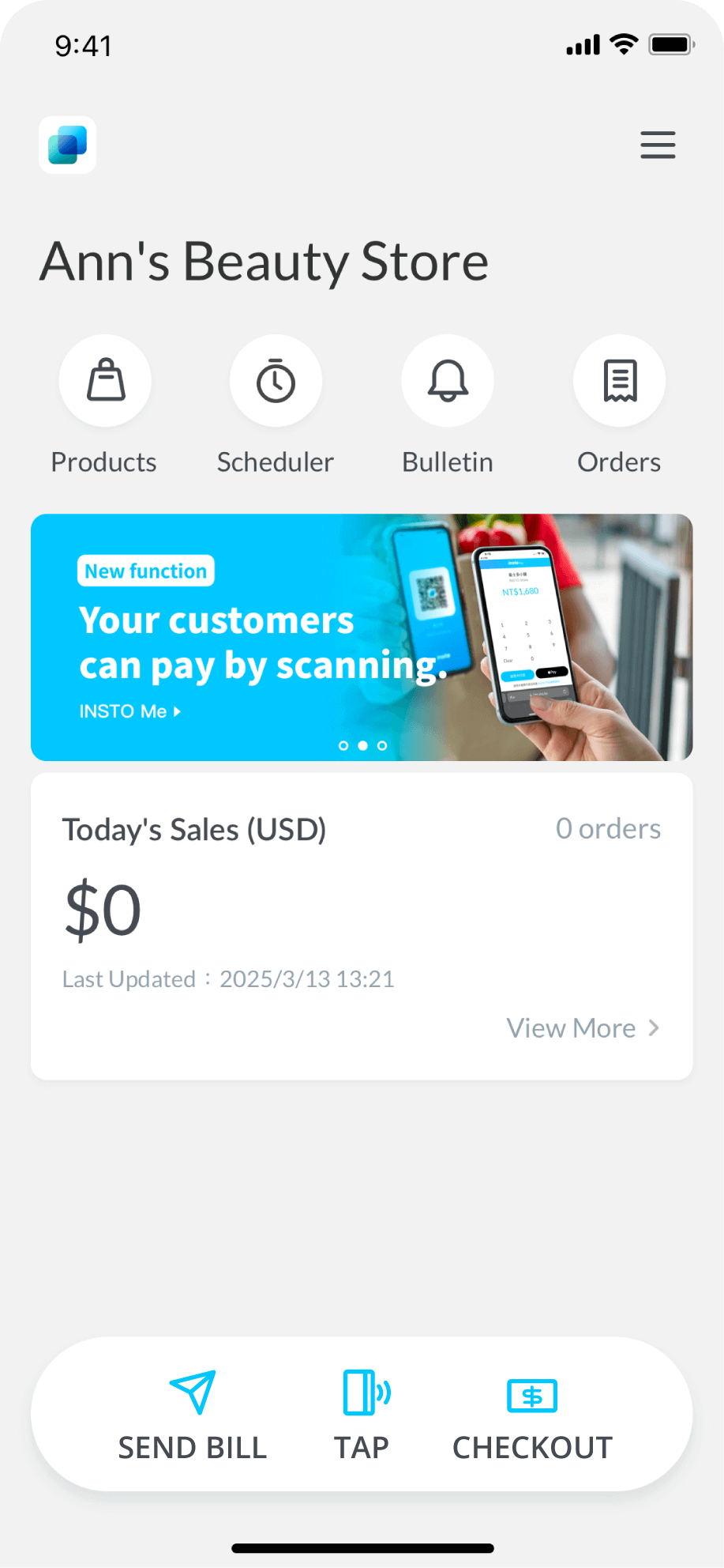 Open the app and select Checkout on the home screen